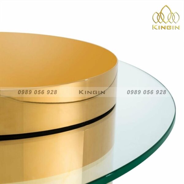 Bàn trà tròn inox mạ vàng mặt kính cường lực KBT0091